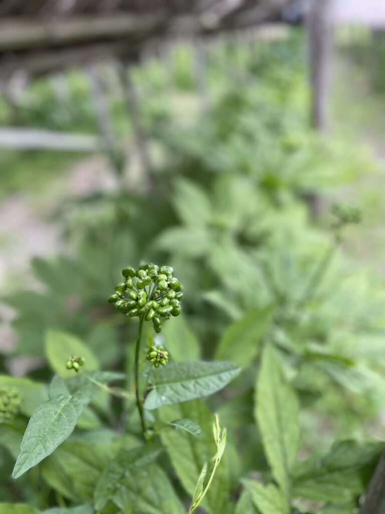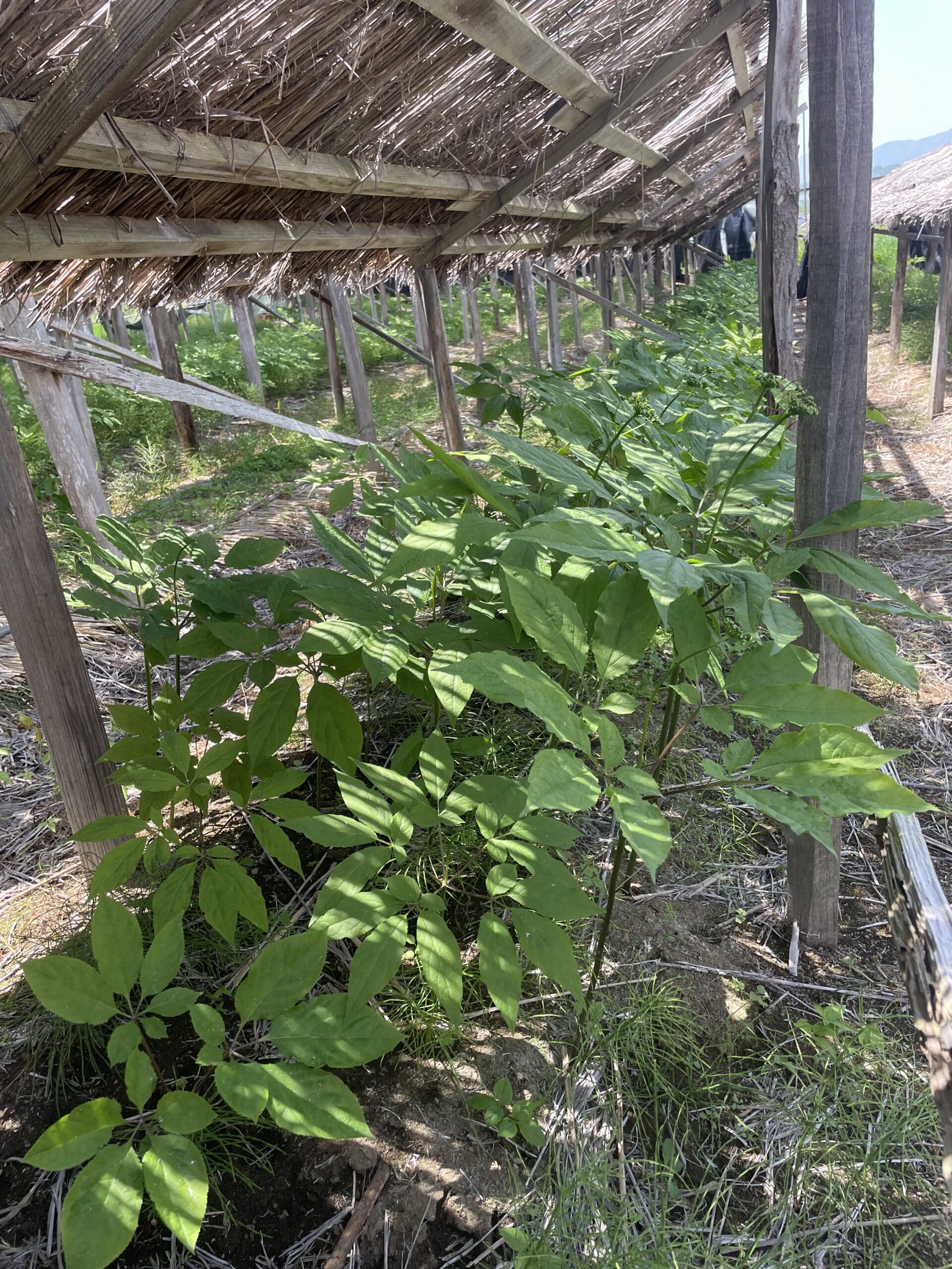 一般的に高麗人蔘を栽培する畑は長年の育成で土壌の成分を吸い取ってしまうため連作ができないと言われますが、センチュウという害虫が収穫後の残ったヒゲ根で増殖するためと近年では言われています。しかし、地力が豊かな場所が良いことは間違いありません。高麗人蔘に適した地力の豊かな土壌にするためは土を何度も掘り返し天日による消毒をしたり、土や砂の量、栄養素などを時間をかけて改善します。また、冷涼な気候と腐植質の土壌を好み、朝日は良いが日中から夕日を直接浴びるのはだめ。水捌けの良い土地を好むが乾燥させすぎてもだめ。と、なかなかに気難しい植物です。ですので、環境をしっかり整備することが栽培のポイントです。