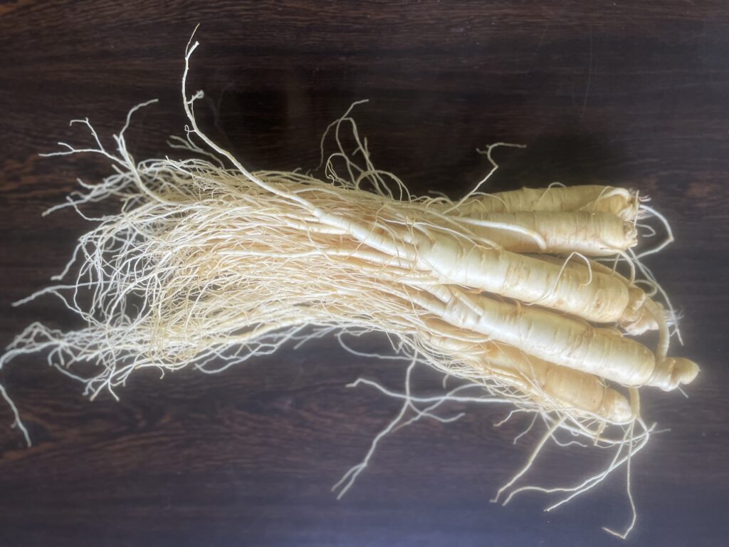 植え付けから2〜6年後の秋〜冬に収穫しますが、高麗人蔘の主要な有効成分である人蔘サポニンの量が増えるのは4年目からで最大になるのは6年目です。